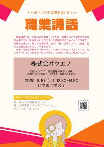令和7年11月10日(月)の13:30~14:30に、職業講話を開催します。
