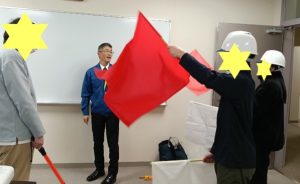 施設警備と空港保安検査、交通誘導業務で使用する実際の道具を使って、作業を体験しました。